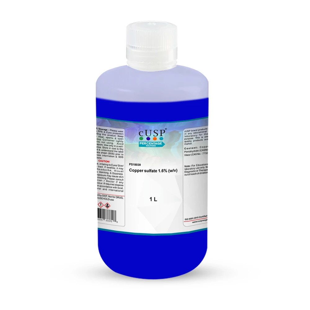 Copper Sulfate 1.6% W/V, Buy now for accurate and Reproducible results from cUSP Percentage Solutions. All cUSP products are exclusively distributed by Dawn Scientific Inc.